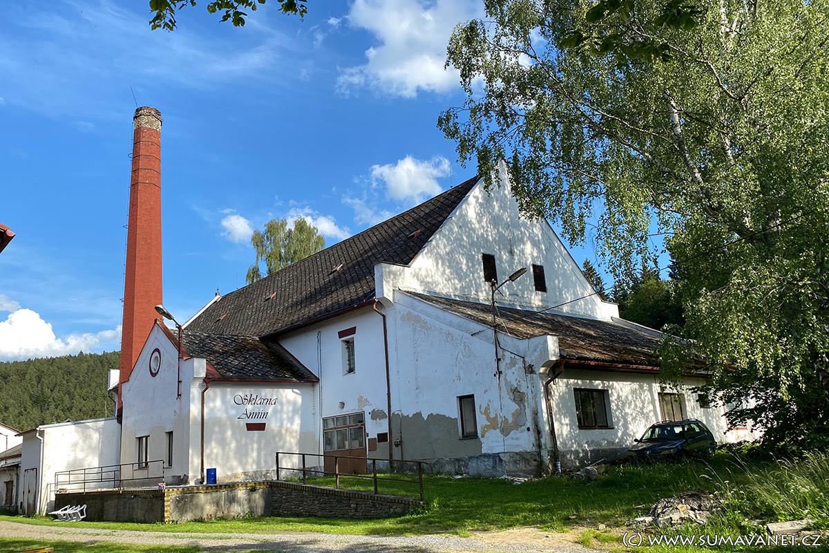 Annín je poměrně mladá osada – v roce 1796 zde Augustin Muller z Vatětic založil sklárnu na křišťálové sklo a malé skleněné kolárky, tzv. pateříky (korálky k růženci). Největší rozkvět Annín zaznamenal v polovině 19. století, kdy se podnik převzal Josef Eduard Schmid, který začal ve sklárně vyrábět růžové i čiré sklo nejvyšší kvality a výrobky exportoval i do Anglie. Postavil zde také první hotel a pekárnu, vlastnil vlastní elektrárnu a zhotovil železný most přes Otavu.